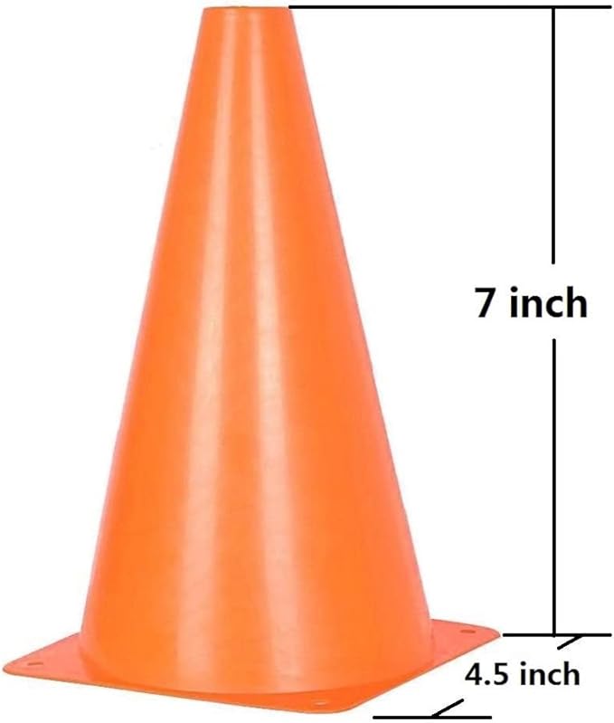 - 【Size 7 Inch】Soccer cones are 7" height x 4.5" diameter. included 25 pcs cones (orange),1* mesh carrying bag.