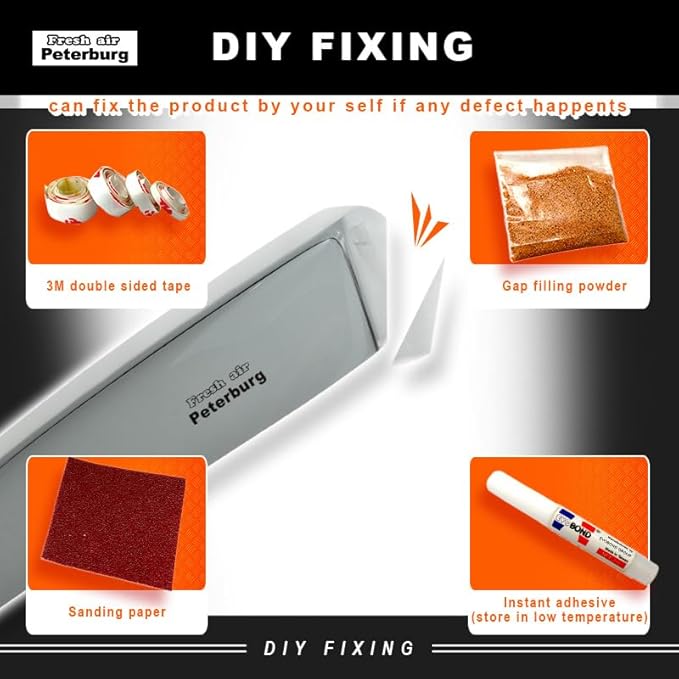 - Easy Installation & DIY Fixing: These car window deflectors are made for specific models with high precision. Not only is it easy to install, but it also comes with components which help the installation process. On the other hand, the product can be easily fixed by yourself if any defect happens (please watch the video in the listing image section for further tutorial).