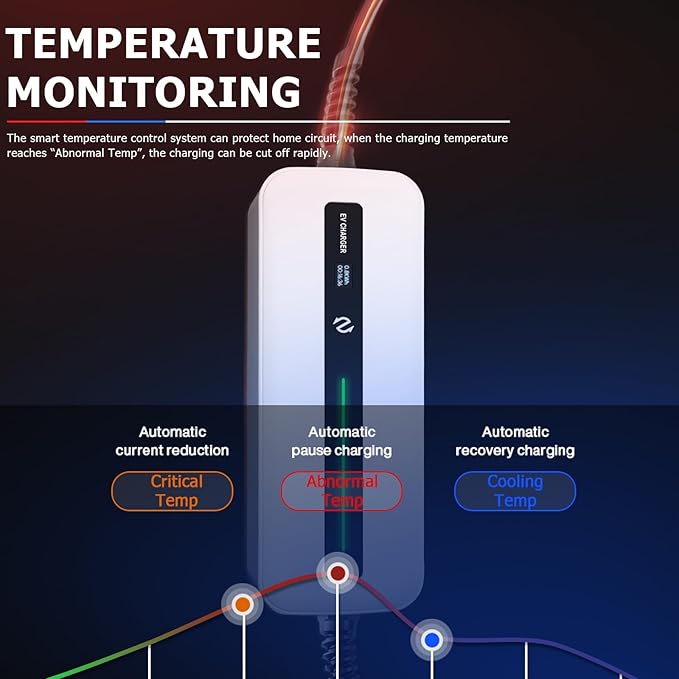 - Portability: The portable ev charger with small size is easy to be carried to any where, you could take it to go on a picnic or travel. Only need a NEMA5-15 outlet, you can charge any time.