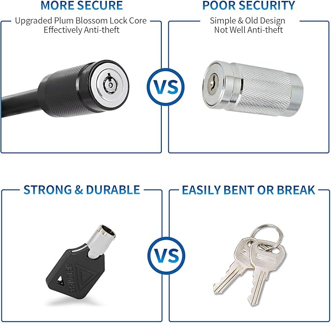 - SAFE & EASY TO USE - The core of the hitch pin lock is made of premium zinc alloy tubular. Its anti-theft design can withstand significant blogs from different kinds of external force. Additionally, this hitch lock set includes rubber cap which effectively keeps the keyhole away from dirt, dust, water.