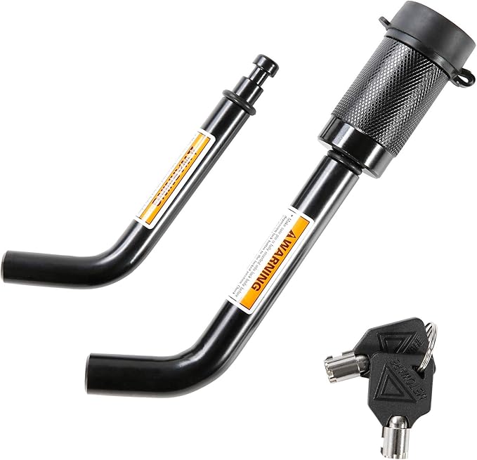 - [SECURITY OF HITCH LOCK] This towing hitch lock is made of black electrophoretic painted solid steel. Our upgraded Zinc alloy tubular lock core adopts more advanced anti-theft technology to improve safety. The pin lock made of heavy-duty steel is durably made and does so without being outrageously heavy.