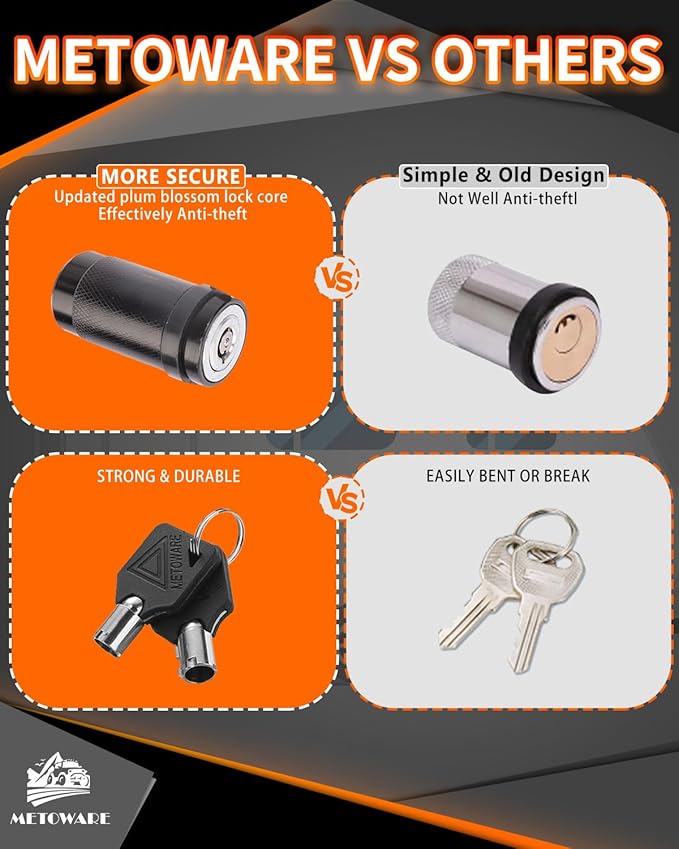 - [CAP FOR THE KEYHOLE] Our trailer hitch receiver lock features one watertight cap that keeps the keyhole away from water and dirt and helps reduce the effects certain weather conditions can have on the integrity of the lock. If live in a place where you expect rain a lot this will really benefit your particular needs, and it would be beneficial to anyone regardless of the climate where you live.