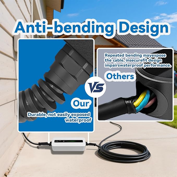 - MULTIPLE PROTECTION: The EVSE providing lightning-proof, loeakage, overvoltage, overheat, IP66 rating waterproof, and overcurrent protection for your safety. Also it features control box with LED charge status indicators help you identify ev charger's working condition.