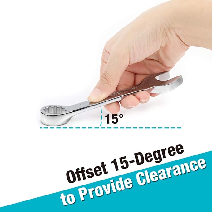 - 12-point box end doubles the access angles of a 6-point and is offset 15 degrees to create clearance so you can securely grip the wrench without busting your knuckles – also letting you apply more torque to the fastener you’re working on. Box end opening is designed to grip flat sides of fastener heads, not corners, to prevent round-off