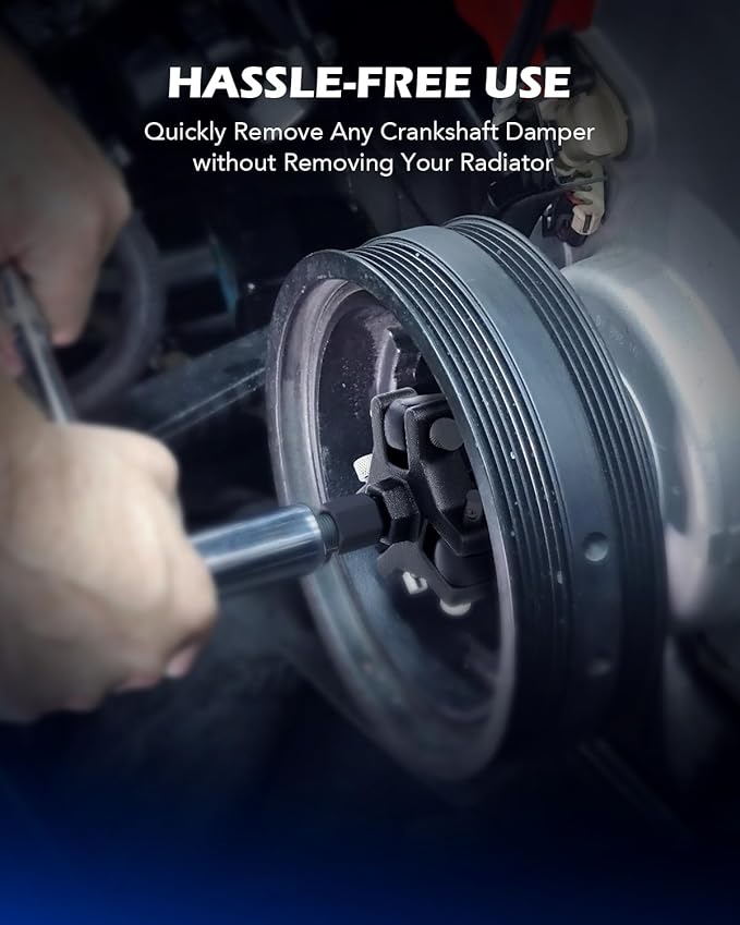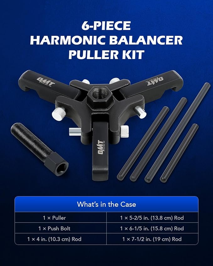 - QUICK BALANCER REMOVAL: This harmonic balancer puller kit by Orion Motor Tech is specifically designed for quick removal of pressed-on balancers with a single center retainer bolt; with this engine repair tool there's no need to disassemble the radiator, saving you a huge chunk of time