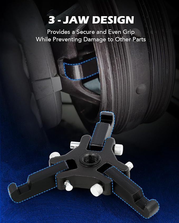 Orion Motor Tech Harmonic Balancer Puller Kit, Adjustable 3-Jaw Puller Set for Removing Harmonic Dampers & Balancers, 3-Jaw Pulley Puller Set Compatible with Chevy GM Chrysler Cadillac Ford More