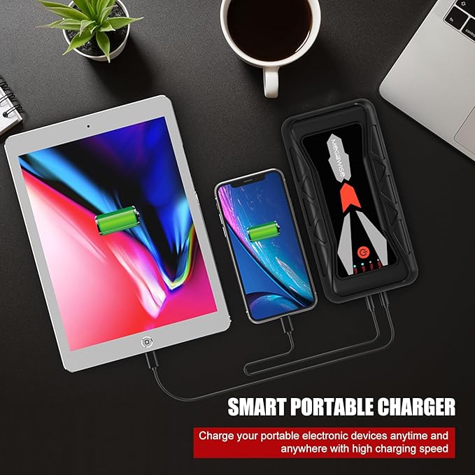 - 💕Mega Value w. Multi Purpose💕 It serves as: 1. Jump Starter for Vehicles 2. BUILT-IN LED Flahs LIGHT for regular & SOS modes. 3. Portable battery charger for gadgets.