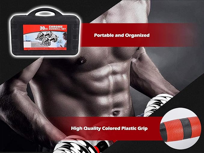 - 【FREE WEIGHT SETS FOR EXERCISES】This 66 lbs set comes with 16 weight plates: 2.5kg(5.5lbs) x 8, 1.25kg(2.75 lbs) x4, 0.5kg(1.1 lbs) x 4, and 2 dumbbell bars, 1 connector bar. In addition, our adjustable iron dumbbells set also come with 4 non-slip spin nuts make the plates no more loosen!