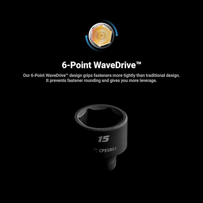 - 6-point WaveDrive design grips fasteners more tightly than traditional design, preventing fastener rounding and giving you more leverage