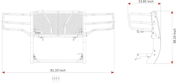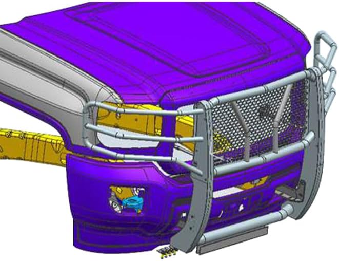 - 5/16" thick HRPO vertical steel plates/Custom -punched center grille for additional protection/High-impact Powder Coat topcoat over corrosion resistant E- Coat