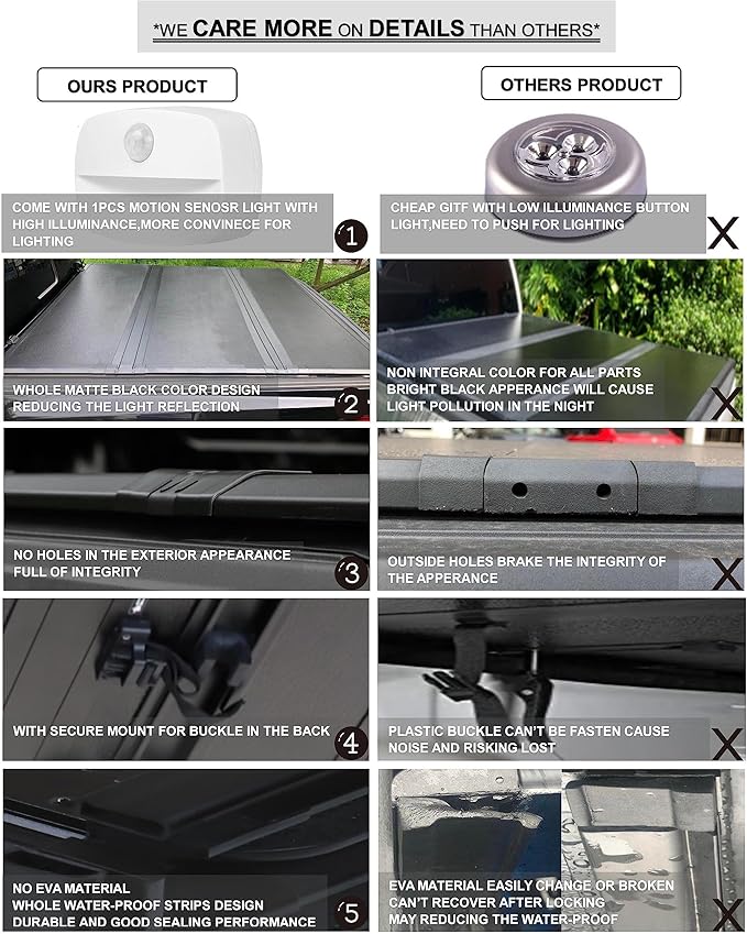 - Item-Offered: FRP Hard Tri-Fold Tonneau Cover, One Pcs Motion Sensor Night Light,Full Set Of Installation And Repair Kits With Manual