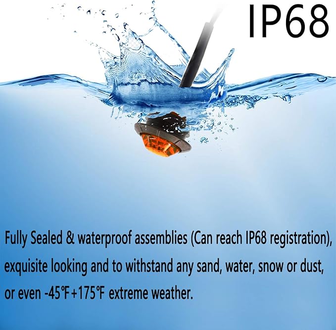 - ★ 100% Waterproof Design: Be of IP68 level, it means that it is able to be soaked in the water, durable sealing and anti-corrosion: it can be used in the rain or harsh environments, easily deal with all extreme environment.