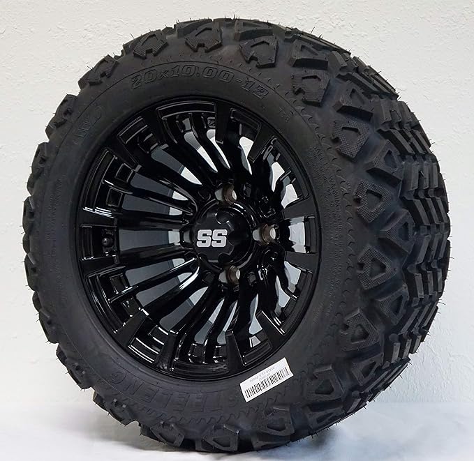 - Includes: (4) 12" Matador Gloss Black Wheels, (4) 20x10-12 DOT All Terrain, (16) Lug Nuts, (4) Center Caps