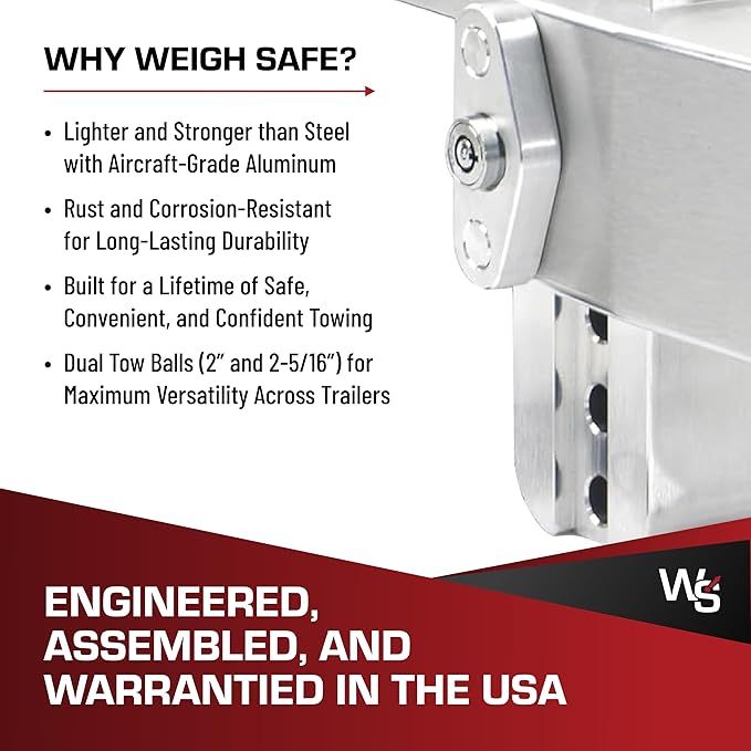 - ENGINEERED & WARRANTIED IN USA: Heavy duty aluminum hitch w/ built-in tongue weight gauge for safe towing (Lifetime Gauge Warranty Included) 2 stainless steel tow balls,dual pin lock,& dust lock cover