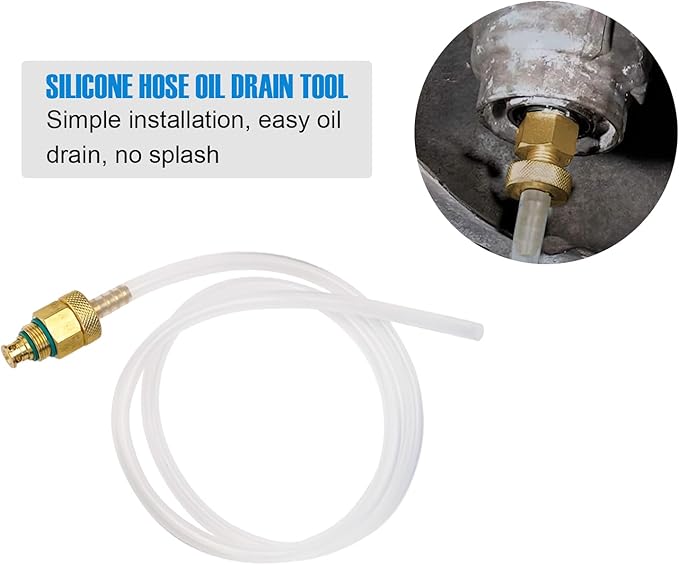 - The drainage tool is made of all copper, CNC machining, and the hose made of silicone is more durable and soft, and will not crease or harden. The waste oil can be removed quickly and cleanly. The all-copper connector has 3 technical Viton O-rings. These O-rings will ensure sealing and durability, and can be used for a long time.