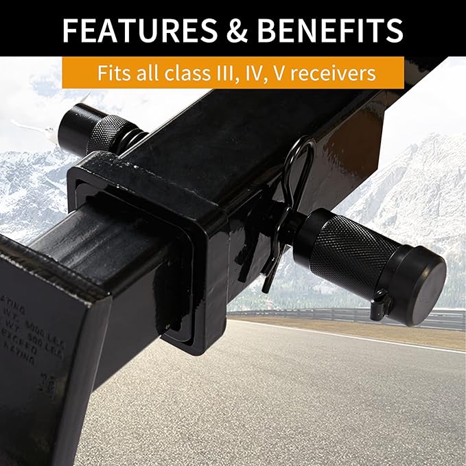- 【PREVENT RATTLING NOISE】- Heavy duty hitch lock is equipped with 8 superior rubber O-rings to help adjust the length of the hitch pin lock, which also can effectively prevent rattling noise caused by shaking during towing.
