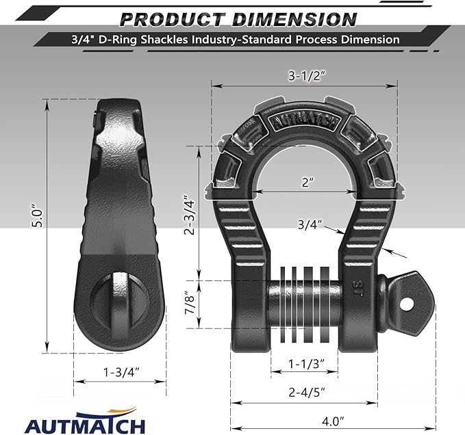 - Super Quality: 3/4 Inch Mega Shackles Was Made of Ultra-Strong Drop Forged Steel and 68,000 LBS Breaking Strength and The Towing Capacity Up To 8 Tons (17,000 LBS WLL) and An Industry-Standard 7/8 Inches Screw Pin For Super Strength To Keep It Stability