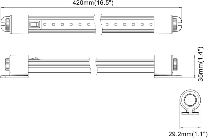 Raycharm LED Porch Light Fixture 16.5" Slim Size, 6000K Cool-White Even Diffused Beam, 180° Rotating Versatile Mounting Feet, 12V/24V DC, Integrated On/Off Rocker Switch for RV Trailer, 1-Pack
