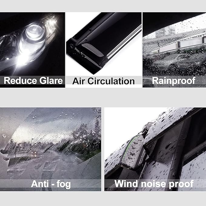 - MAKE JOURNEY ENJOYABLE: You can drive in comfort with our side Window Deflectors,without worrying about the noisy wind, chilly snow, annoying rain sprays,blazing sunshine.