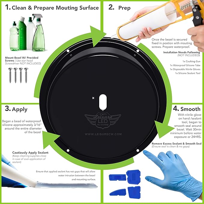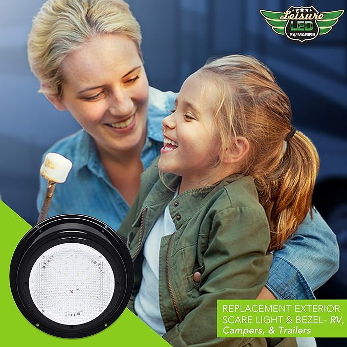 Leisure LED RV Trailer Camper 5th Wheel Black 8.5" Round Scare Porch 12V LED Light 600 LM with Angled Bezel (LED Light with Angle Bezel Black)