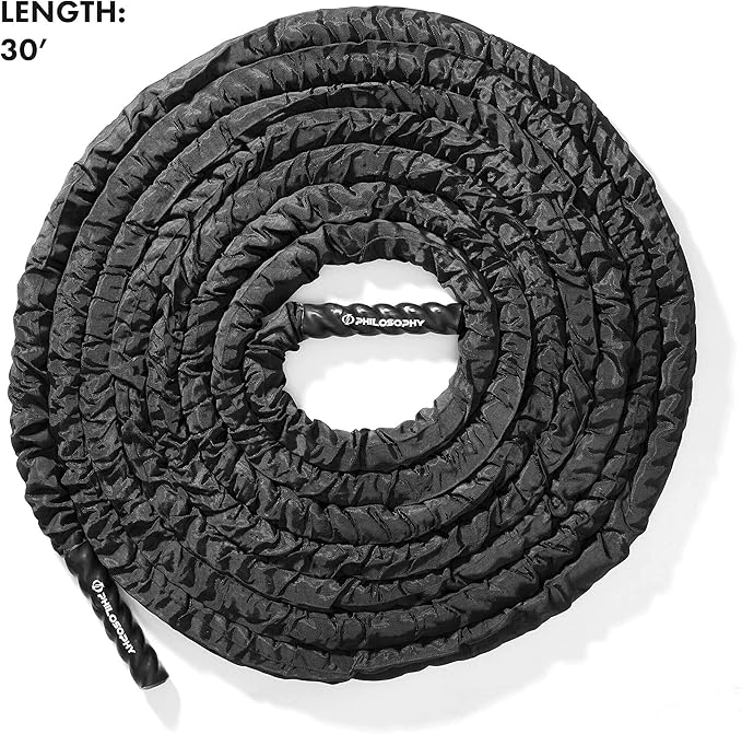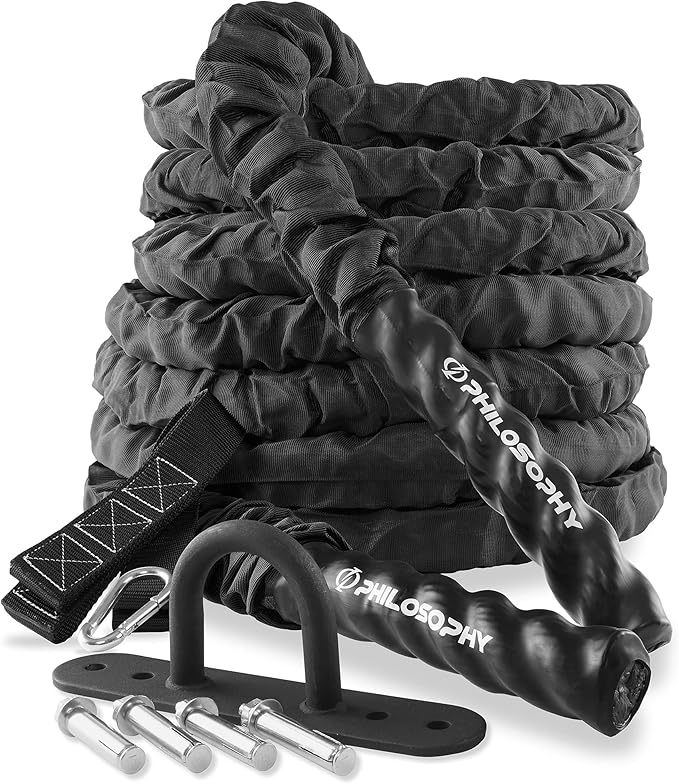 Philosophy Gym Exercise Battle Rope with Cover and Anchor Kit for Fitness Training, Conditioning