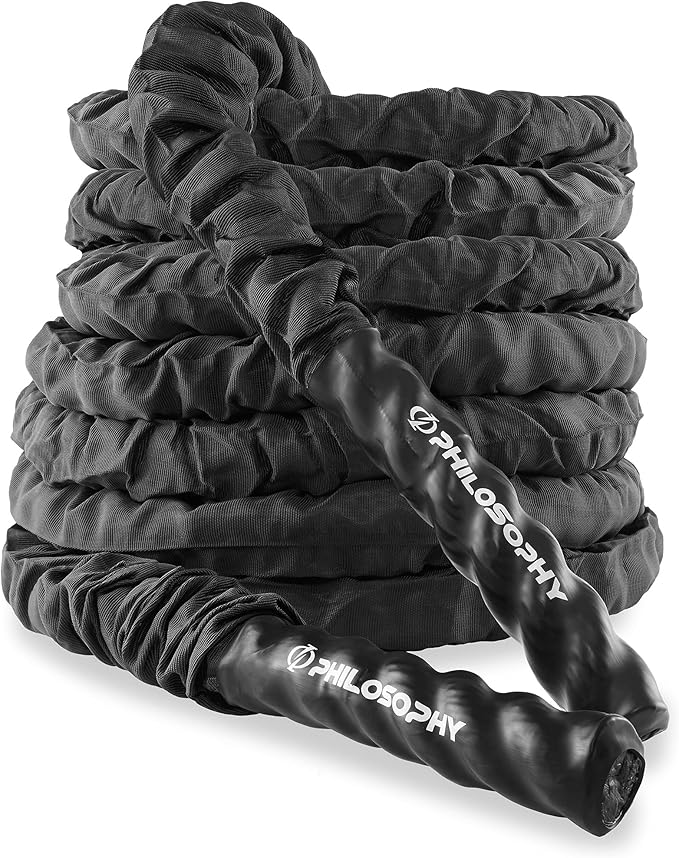 Philosophy Gym Exercise Battle Rope with Cover and Anchor Kit for Fitness Training, Conditioning