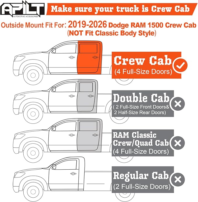 - Attention! Check the model and year of your car before you buy.APILT Thicker rain guards is designed for 2019,2020,2021,2022,2023 ,2024,2025,2026 Dodge RAM 1500 Crew Cab (DO NOT FIT Dodge Ram 1500 Classic 2019-2026).