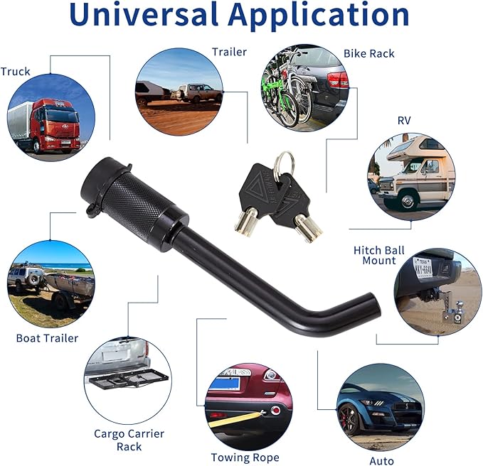 - [CAP FOR THE KEYHOLE] Our trailer hitch receiver lock features one watertight cap that keeps the keyhole away from water and dirt and helps reduce the effects certain weather conditions can have on the integrity of the lock. If live in a place where you expect rain a lot this will really benefit your particular needs, and it would be beneficial to anyone regardless of the climate where you live.