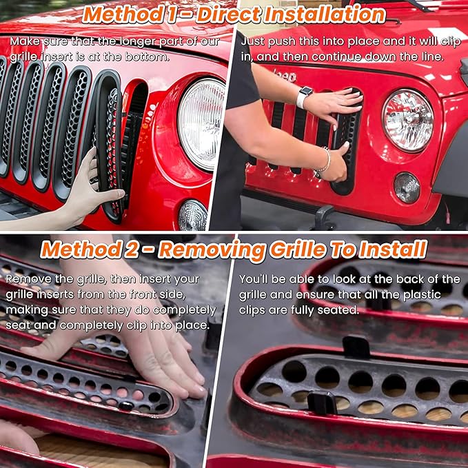 - Great Compatibility — Perfectly fit for Jeep Wrangler JK JKU 2007 2008 2009 2010 2011 2012 2013 2014 2015 2016 2017 2018 both 2-Door and 4-Door. Will not fit any models that already have inserts in the front grille.