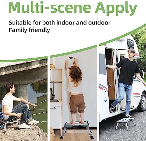 - GOOD TRACTION: Not only does this camper steps for travel trailers has gripper strips to increase friction, but also has non-slip rubber coverings on legs to offer even more stability and support. You won’t have to worry about tripping or slipping accidents