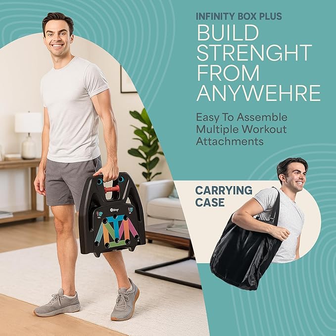 - CUSTOMIZABLE TO YOUR FITNESS LEVEL: Level up your full-body home gym workout. Whether you want to do resistance training, strength and stability, high interval intensity, ab, core, arm, leg or back strength building workout, the Infinity Box Plus home gym system has you covered.