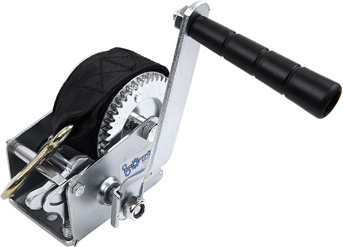 - 【Gearing】: Gear Ratio 3.2 : 1. The carbon steel treated gears make the trailer winch with strap wear resistant, corrosion proof and long lasting.