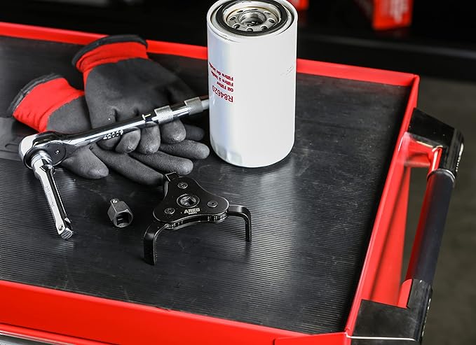 - DESIGN: This Adjustable 3-Jaw Oil Filter Wrench adjusts to exactly the size you need to remove most spin-style oil filters between 2 1/2 inches and 4 inches (63mm to 101mm) in diameter. Compatible with both 3/8-inch and 1/2-inch drive ratchets and breaker bars, this oil filter wrench also features a 7/8” hex bolster that can be used with a standard or ratcheting wrench, so you’ll have plenty of options to get the leverage and access you need.