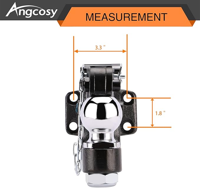 - 【Measurement】: The diameter of the hitch ball is 2-5/16 inches; the mounting hole on the back whole separation a part on center go in horizontal direction is 3.35 inches, and the Portrait direction is 1.77 inches; The diameter of these mounting holes is 1/2 inch;
