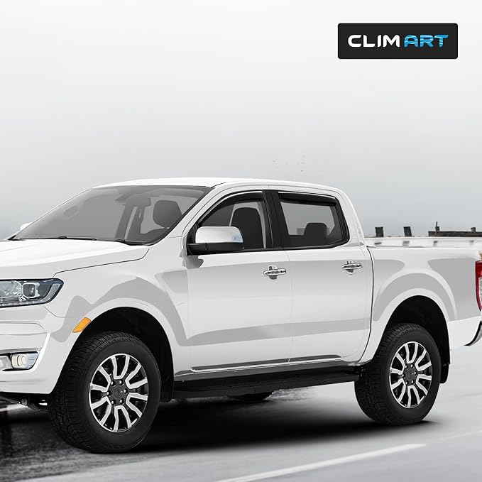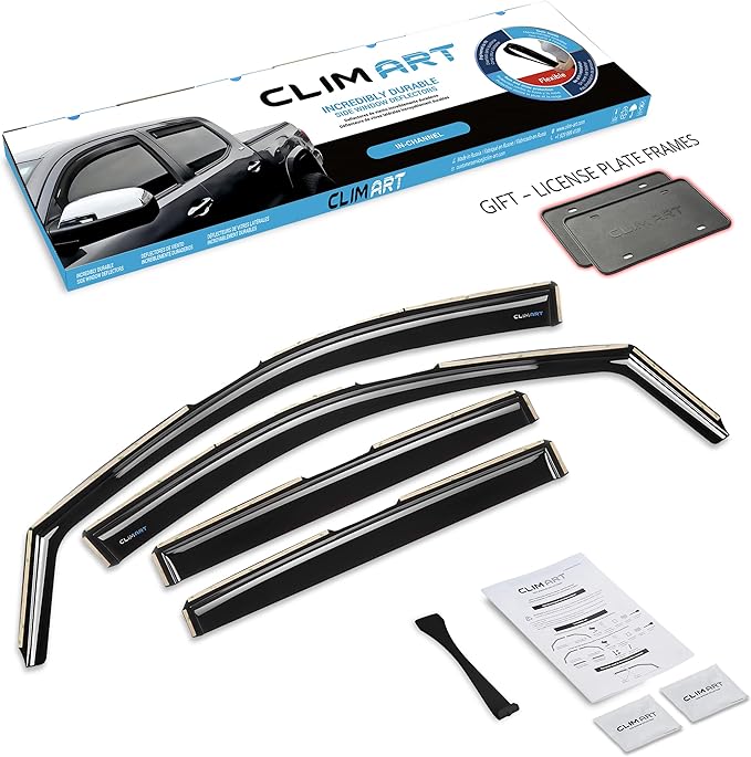 - MAKE CAR RIDES MORE ENJOYABLE — Open the windows and enjoy the breeze as you cruise around, without worrying about the noisy wind, chilly snow, annoying rain sprays/splashes, or the blazing sunshine with CLIM ART side window deflectors. Drive in STYLE & COMFORT with our truck accessories - car window shields!