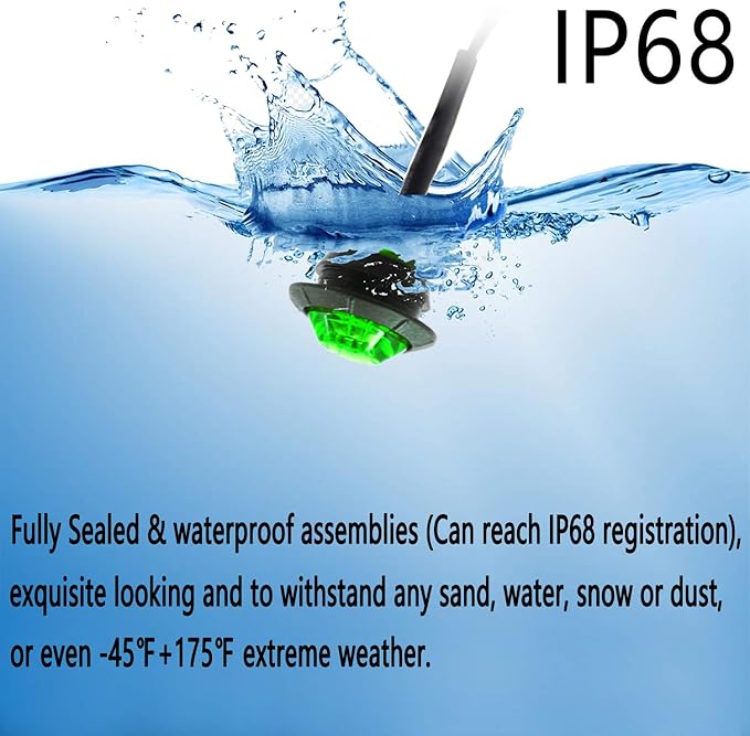 - ★ LED Marine Boat Lights parameters: DC 12V; Rated Wattage: 1.5 Watt per light; IP68 Waterproof; Lumen Maintenance Percentage>95%; Operation Temperature: -45℉+175℉; Size: Standard 3/4 Inch Mini Round; More Than 100000 Hours Life.