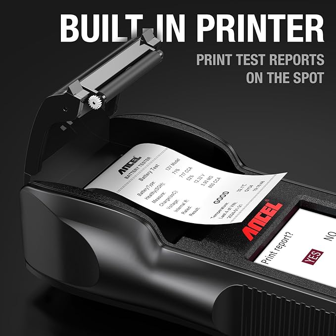 - Built In Printer - Compared to other battery testers requiring additional purchase of an external printer and PC connections for printing, ours features an integrated printer compatible with standard thermal paper. This enables quick printing of work orders, seamless customer sharing, and streamlined record-keeping, saving time and money.