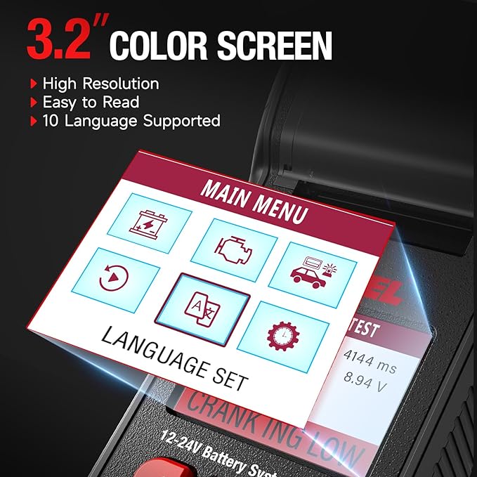 - Advanced Tech - Featuring a 3.2" color backlit LCD display, the BST600 offers visual data that's easy to read. Encased in acid-resistant ABS plastic for durability and anti-skid properties, it comes with a silicone break-proof cover for the cable, Soft rubber buttons add a comfortable touch while ensuring they are wear-resistant. it also tests battery temperature against optimal ranges, preventing overheating or cold-related issues and thereby boosting performance, safety, and longevity.
