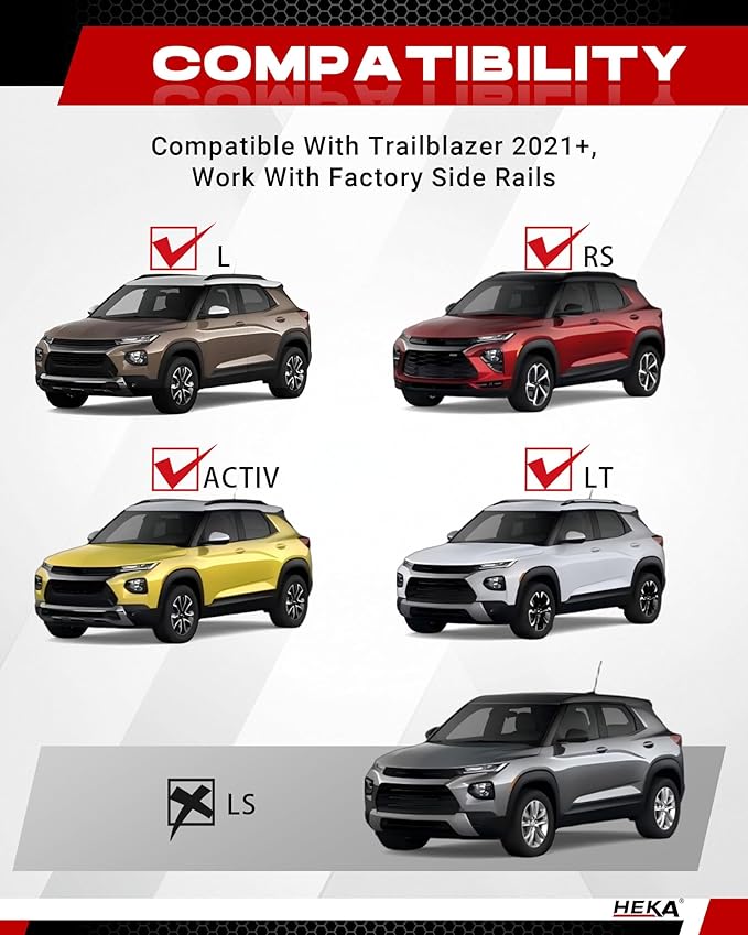 - 【Perfect Fit】:Fit For Chevy Trailblazer 2021-2026 L LT ACTIV RS (WITH SIDE ROOF RAILS). Note:Not for Chevy Trailblazer LS.Please check your vehicle's year, make and model before purchase.