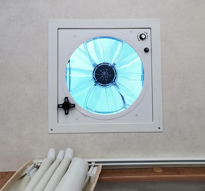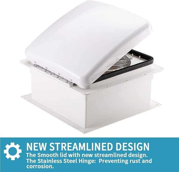 - Powerful and Efficient: This RV roof fan provides a fantastic air circulation for your RV. And it moves a lot of air but only use little power because of this durable and stable can motor.