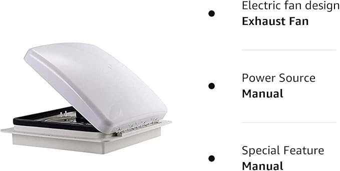 12V RV Roof Fan Vent 14'' 10-Speed Reversible Manual Lift Trailer Camper Van Lid (White)…
