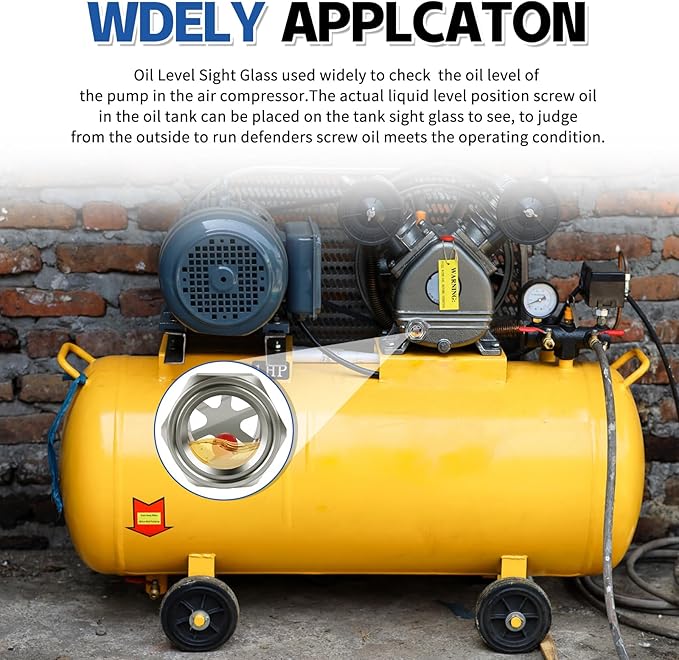 - 【Application】 The stainless steel oil sight plug is a kind of liquid indicator used in tanks, air compressors, pumps, piping system, automotive industries, lab equipments, bearing housing and mixers etc. The oil level indicator has good viewport for visual Inspection of water, oil and gas (WOG).