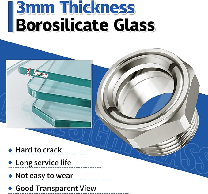 - 【Good Transparet View 】The stainless steel oil level sight glass with tempered glass, can provide you with a good transparent sight view , the compressor oil sight glass is also with baffle and red ball which help you can easily observe the change of medium.