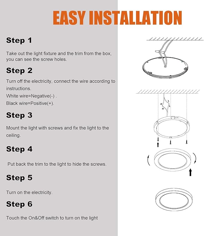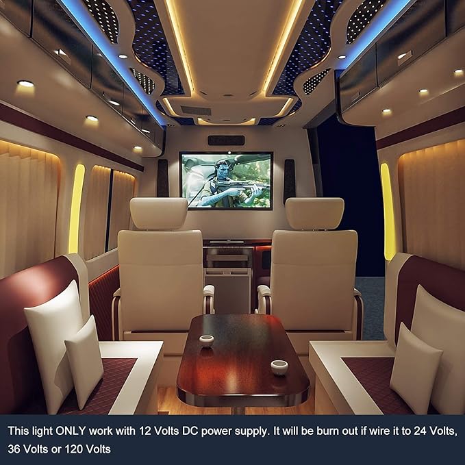 - 【Easy Install & Universal Fit】 Compact 7-1/2-inch diameter, slim 7/16-inch profile fits flush in tight spaces. Simple 3-screw mounting (hardware included) with 2-wire connection (black+/white-). Works with 12V DC systems in RVs, motorhomes, caravans, boats, and more. 1-year warranty for peace of mind.