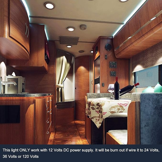 - 【Easy Install & Universal Fit】 Compact 4-5/8-inch diameter, slim 3/8-inch profile fits flush in tight spaces. Simple 3-screw mounting (hardware included) with 2-wire connection (black+/white-). Works with 12V DC systems in RVs, motorhomes, caravans, boats, and more. 1-year warranty for peace of mind.