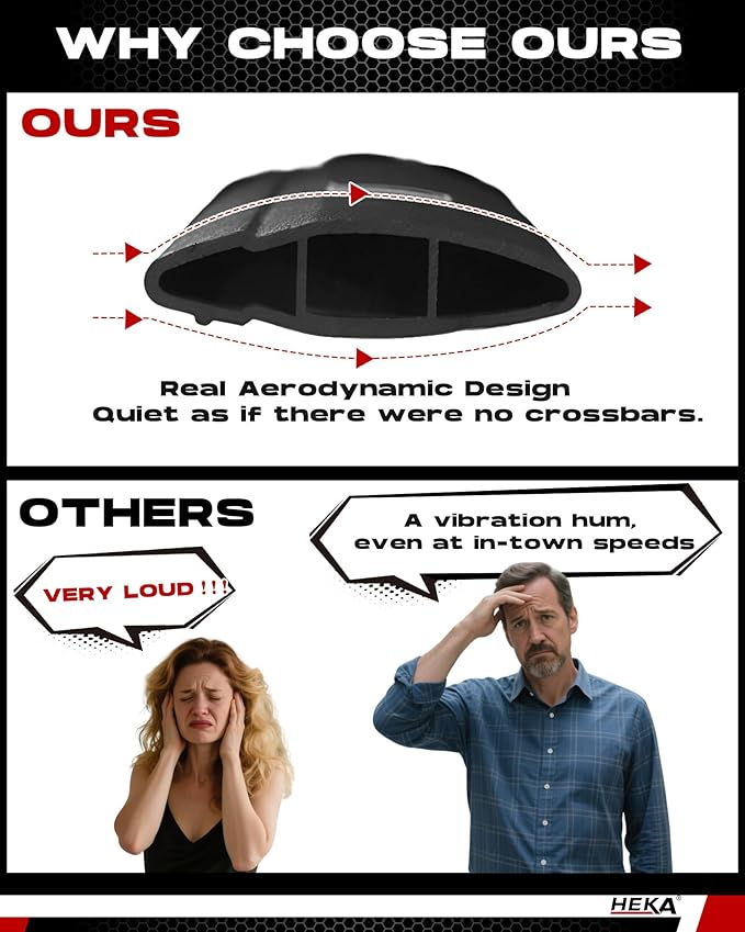 - 【Say NO! To Noise】:Benefiting from the aerodynamic design and sturdy structure,it remains free of rattling, movement, squealing,howling,whistle and wind noise.The rubber mat perfectly fits the luggage rack,with no gaps.