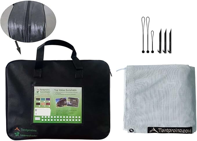 - EASYINSTALL & DISMOUNT - light weight and comfortable hand feeling. 3 sets of plastics stakes & bungee balls included in storage bag. It's faster and easier installed one piece shade but not 2 pcs zipper combined complicated shade.