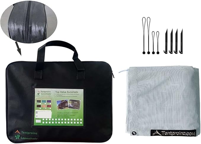 - EASYINSTALL & DISMOUNT - light weight and comfortable hand feeling. 4 sets of plastics stakes & bungee balls included in storage bag. It's easier and faster installed one piece shade, but not complicated zipper combined 2 pcs shade.