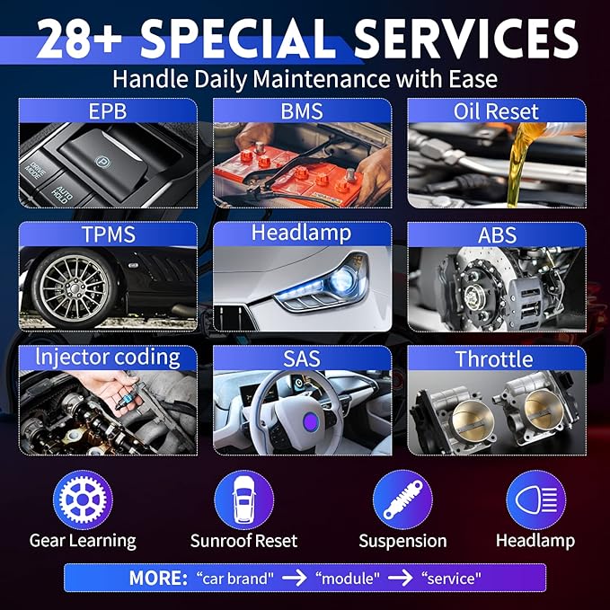 - 【Newest & 28+ Services】Autel MK808Z is the most mature and reliable autel diagnostic tablet with years of proven market test, able to perform up to 28+ services such as Oil Reset, ABS Bleeding, EPB Reset, SAS Reset, Battery Registration, Throttle Reset, etc. Please note that all the services function is not universal and vary from different car models.