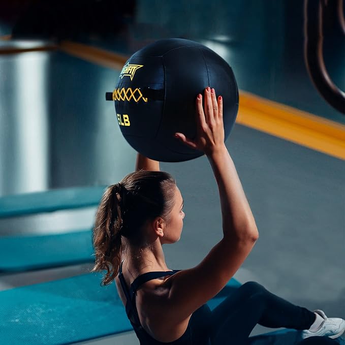 - 【Double Stitched Soft Shell with Non-Slip Grip】 - The soft medicine wall ball is crafted from premium synthetic leather that is laser cut, double stitched and hand padded to match the high quality construction of the medicine ball. The ergonomically constructed non-slip handle makes it easy to hold even when sweating.